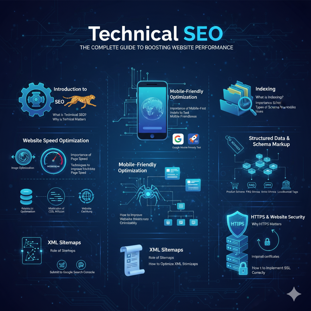 Technical SEO refers to the backend optimizations that help search engines crawl, index, and rank your website effectively. Think of it like the engine of your car—it’s not always visible, but without it, nothing moves.